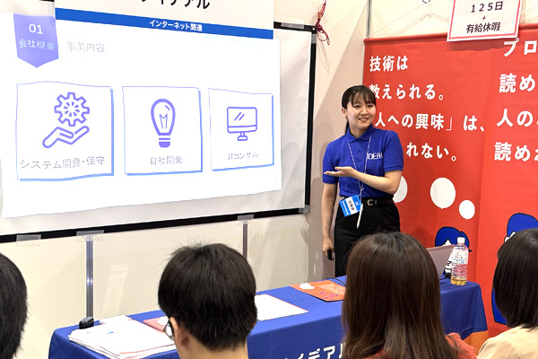 来場者は事前予想では約6,500名で、多くの学生の皆さんが会場に足を運んでくださいました。当社のブースにも209名の学生にお越しいただき、当日その場でインターンシップにご予約いただいた方も多く、終始、にぎわいと熱気にあふれる一日となりました。