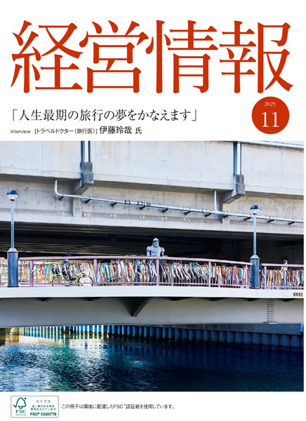 『経営情報』は、1970年の創刊以来、中小企業の経営者向けに、注目のテーマについて発信を続けている月刊誌で、全国の営業担当の方より顧客の方々へ配布されています。