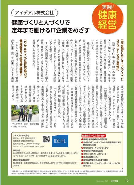 - 【健康経営】当社健康経営の取り組みが『経営情報』に掲載されました。
